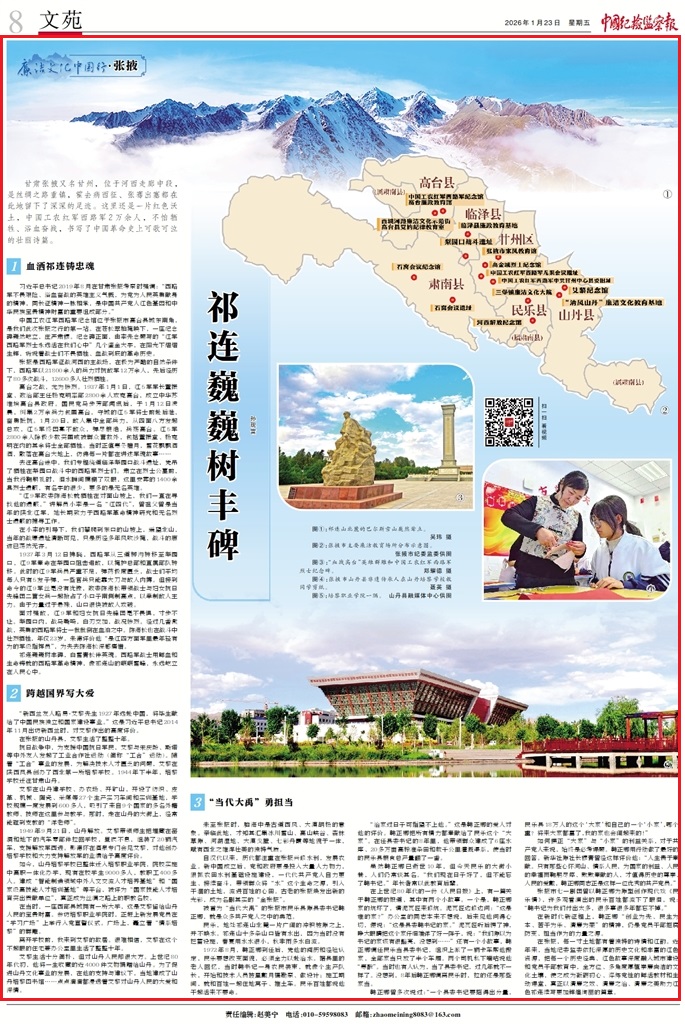 甘肅張掖又名甘州,位于河西走廊中段,是絲綢之路重鎮(zhèn),霍去病西征、張騫出塞都在此地留下了深深的足跡。這里還是一片紅色沃土,中國工農紅軍西路軍2萬余人,不怕犧牲、浴血奮戰(zhàn),書寫了中國革命史上可歌可泣的壯麗詩篇。