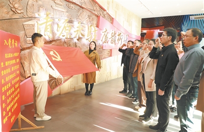 廣西壯族自治區(qū)柳城縣通過(guò)開(kāi)展多種形式學(xué)習(xí)教育,推動(dòng)黨員、干部鑄牢對(duì)黨絕對(duì)忠誠(chéng)政治品格。圖為該縣黨員干部到廉政教育基地開(kāi)展主題黨日活動(dòng),重溫入黨誓詞。陳婕 攝