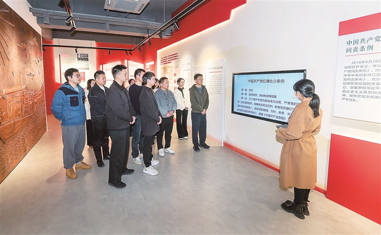 近日,浙江省嘉興市南湖區(qū)開(kāi)展廉潔教育主題黨日活動(dòng),組織黨員干部走進(jìn)廉政教育基地接受教育,引導(dǎo)黨員干部做到篤信務(wù)實(shí)擔(dān)當(dāng)自律。圖為該區(qū)青年黨員干部參觀南湖紅廉館。新華社記者 徐昱 攝