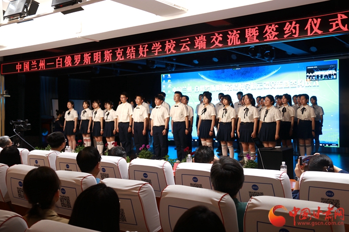 在蘭州外國語高級中學舉行的此次“中國蘭州—白俄羅斯明斯克結(jié)好學校云端交流暨簽約儀式”上,蘭州外國語高級中學與明斯克市第23中學、蘭州市第33中學與明斯克市第33中學校長及主要負責人經(jīng)過交流后,分別簽署締結(jié)“百校結(jié)好”項目學校協(xié)議,正式建立友好合作關(guān)系。今后將在師生互訪、教師培訓、課程交流、國際學生社團建設(shè)等方面開展合作交流。之后,四所學校學生還分別表演了富有各國傳統(tǒng)文化和民族特色的文藝節(jié)目。
