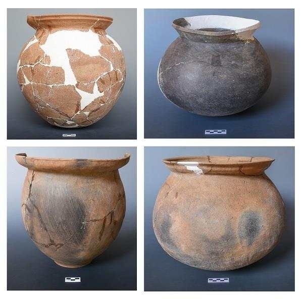 四臺(tái)遺址面積約15萬(wàn)平方米,考古發(fā)現(xiàn)房址40余座,出土了陶、石、骨、貝類遺物800余件,可以區(qū)分為年代不同的五組文化遺存,其中,第一、二組遺存處于舊石器時(shí)代向新石器時(shí)代過(guò)渡階段。第一組文化遺存年代距今10400至10000年,發(fā)現(xiàn)6座近方形半地穴房址,出土打制石器、細(xì)石器、磨制石器、骨角器以及動(dòng)物骨骼等,陶器有筒形罐、板狀器等,器表戳印圓圈紋或壓印折線紋、網(wǎng)格紋。第二組文化遺存年代距今9200至9000年,發(fā)現(xiàn)4座近方形半地穴房址,出土陶板狀器、石研磨器以及較多骨針、骨錐等,呈現(xiàn)出與第一組連續(xù)發(fā)展的特征。