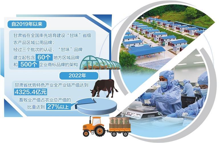 2022年,甘肅農(nóng)業(yè)產(chǎn)業(yè)逐步邁上布局區(qū)域化、種養(yǎng)標準化、生產(chǎn)規(guī)?;l(fā)展軌道,優(yōu)勢特色產(chǎn)業(yè)全產(chǎn)業(yè)鏈產(chǎn)值達到4325.4億元,畜牧業(yè)產(chǎn)值占農(nóng)業(yè)總產(chǎn)值比重達到27%以上。