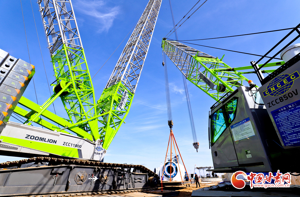 2月21日,張掖市臨澤縣平川北灘30萬千瓦風(fēng)電項(xiàng)目建設(shè)現(xiàn)場,工作人員正在進(jìn)行主機(jī)吊裝。