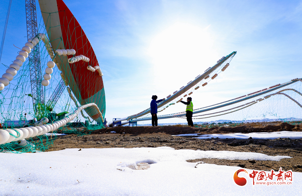2月21日,張掖市臨澤縣板橋北灘20萬千瓦光伏發(fā)電項(xiàng)目建設(shè)現(xiàn)場,工作人員正在進(jìn)行發(fā)電前的設(shè)備調(diào)試。