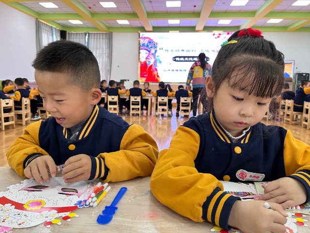 中國教育報(bào)-中國教育新聞網(wǎng)訊(記者尹曉軍通訊員張亮楊兆玉)近日,甘肅省張掖市山丹縣東街幼兒園邀請(qǐng)縣博物館聯(lián)合開展“傳承經(jīng)典國韻文化浸潤童心”傳統(tǒng)文化進(jìn)校園活動(dòng)?;顒?dòng)中,博物館的老師不僅為孩子們講述了京劇臉譜的內(nèi)涵、特點(diǎn)及分類,還帶領(lǐng)孩子們模仿了戲曲選段中的動(dòng)作,現(xiàn)場唱了戲曲名段。在老師的講解示范下,孩子們巧手繪制了臉譜?,F(xiàn)場孩子們熱情高漲、積極參與,傳統(tǒng)文化悄無聲息在孩子們心中“生根發(fā)芽”。