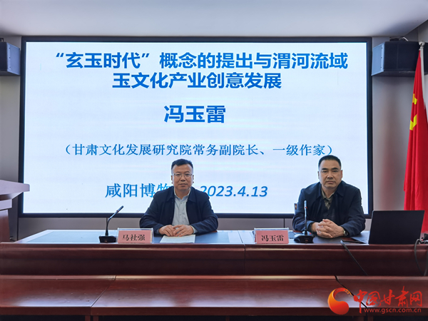 中國甘肅網(wǎng)4月13日訊 為進(jìn)一步促進(jìn)博物館學(xué)術(shù)研究交流創(chuàng)新,激發(fā)博物館發(fā)展活力,持續(xù)推動博物館高質(zhì)量發(fā)展,陜西咸陽博物院于4月13日下午3點(diǎn)舉辦第二期“咸博大講堂”專題講座,甘肅文化發(fā)展研究院常務(wù)副院長、一級作家馮玉雷作了題為《“玄玉時(shí)代”概念的提出與渭河流域玉文化產(chǎn)業(yè)創(chuàng)意發(fā)展》的學(xué)術(shù)報(bào)告。咸陽博物院院長馬社強(qiáng)主持講座。