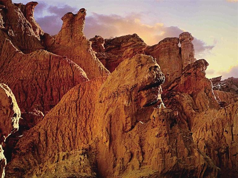 張掖土林地貌主要集中在該市肅南縣境內(nèi),平均海拔高度1700米左右,面積約20平方公里。土林發(fā)育齊全、類型多樣,從幼年時期的細溝土牙,到中青年期的圓盆土柱,直至成熟期的坡地殘柱,均有呈現(xiàn),完整地展示了土林地貌的形成與演化過程。