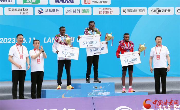 經(jīng)過兩個多小時(shí)的激烈角逐,全程馬拉松男子和女子組名次相應(yīng)產(chǎn)生。其中,男子馬拉松第一名打破了蘭馬賽會紀(jì)錄,女子馬拉松第一、二、三名均打破了蘭馬賽會記錄。