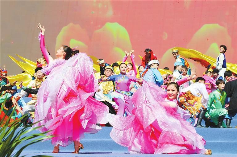 隨著曼妙激昂的舞蹈《石榴花開》上演,這場屬于“花兒”的盛會正式啟幕。隨后,《雪白的鴿子》《巴西古溜溜》、優(yōu)雅大氣的舞蹈《吉祥歡歌》《絲路民族風》《今夜草原有雨》《白牡丹令》等經典歌舞節(jié)目精彩上演,贏得臺下陣陣掌聲。甘肅籍民謠歌手張尕慫帶來的《等風來》更是將現(xiàn)場氣氛推向高潮,來自各個民族的數(shù)千觀眾沉浸在這場非遺文化盛宴中。