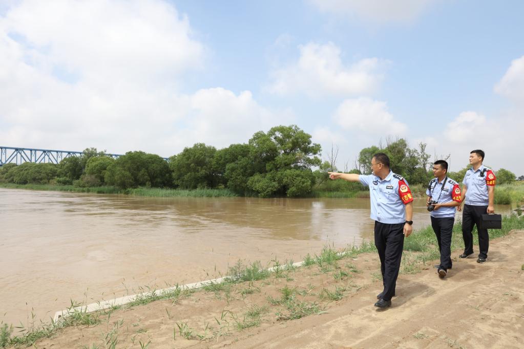 黃河派出所和黃河河務(wù)局水政監(jiān)察大隊人員對刁口河生態(tài)補水進行巡查。新華社記者 劉詩平 攝