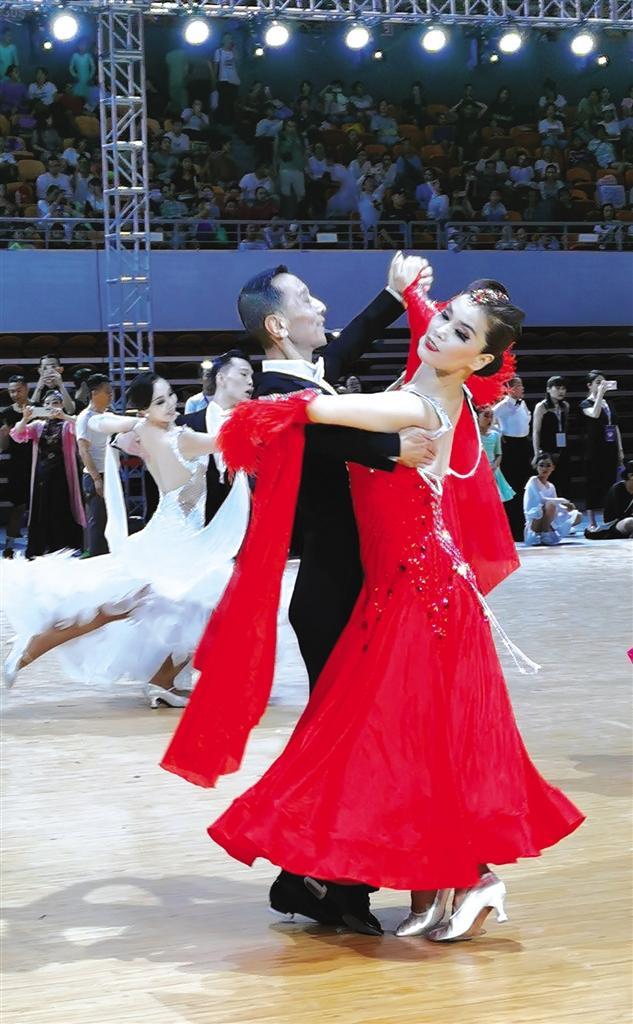 當天的蘭州奧體中心綜合館內(nèi)燈光璀璨、激情四射。伴著或動感或舒緩的音樂,優(yōu)雅浪漫的華爾茲、熱情奔放的探戈、性感狂野的倫巴……舞者們依次上場,將最優(yōu)美、最富激情、充滿藝術(shù)活力與創(chuàng)造力的高水平體育舞蹈展現(xiàn)在觀眾和裁判面前。
