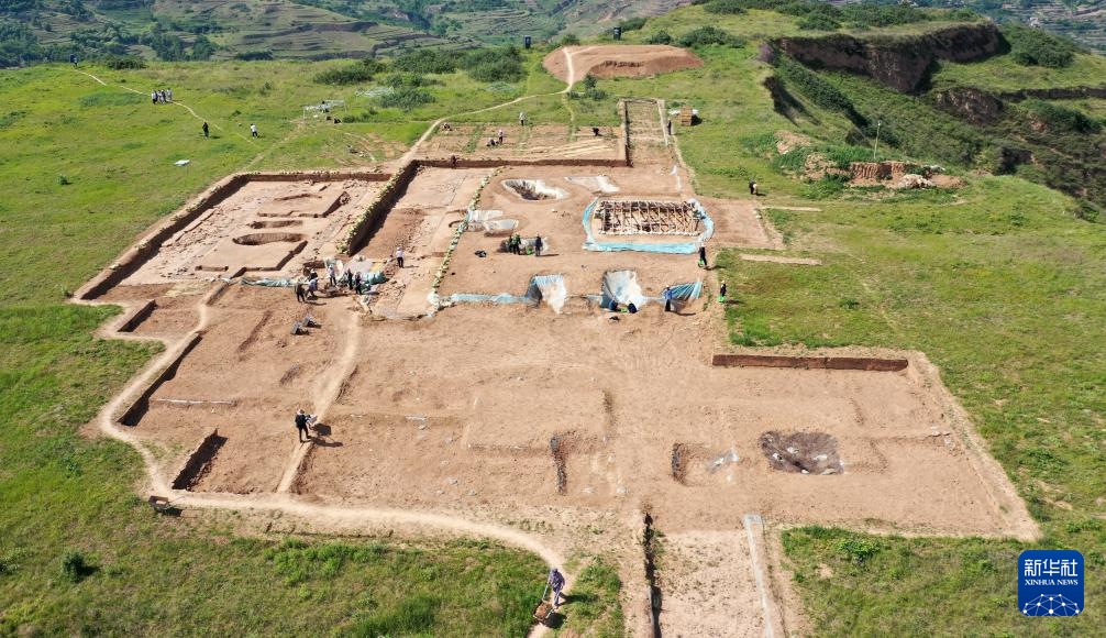 這是2022年6月10日拍攝的甘肅省隴南市禮縣四角坪遺址考古發(fā)掘現(xiàn)場(無人機(jī)照片)。新華社記者 陳斌 攝