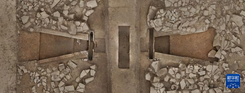 這是甘肅省隴南市禮縣四角坪遺址的排水設(shè)施(2024年1月8日攝,無人機(jī)照片)。新華社發(fā)(四角坪遺址考古隊供圖)