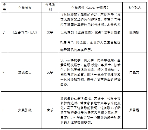 2024年6月,甘肅版權(quán)綜合服務(wù)平臺共完成省內(nèi)作品登記804件,其中文字作品235件、美術(shù)作品469件、攝影作品9件、音樂作品39件、視聽作品20件、口述作品8件、其他作品24件。經(jīng)認(rèn)真組織篩選,并經(jīng)著作權(quán)人同意,現(xiàn)公開推薦以下10件優(yōu)秀作品,歡迎社會各界交流合作。(聯(lián)系方式:0931-8270727)