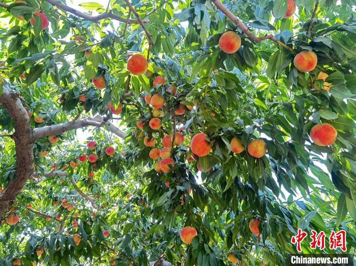 中新網(wǎng)蘭州7月31日電 (記者 閆姣)7月底,走進(jìn)蘭州市城關(guān)區(qū)伏龍坪街道卓家溝村,陣陣果香撲鼻而來,粉嘟嘟的桃子掛滿枝頭。據(jù)當(dāng)?shù)毓r(nóng)講述,這里的果蔬采用黃河水澆灌,加之地理位置特殊,所產(chǎn)水果水分足、口感好,常被“訂單式”銷售至周邊地區(qū)及上海、廣州、江蘇等地。