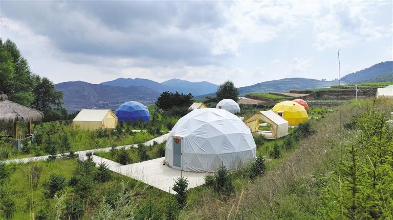 沿興隆山大道進(jìn)入滿(mǎn)目翠綠的原始森林,隨著彎曲的盤(pán)山公路走進(jìn)了哈班岔村時(shí),首先映入眼簾的便是層層遠(yuǎn)山間科技范十足的民宿太空艙和造型獨(dú)特的露營(yíng)帳篷,山坡上植被茂密,臨近山腳下的梯田色彩豐富,將一幅自然與人文相互映襯的鄉(xiāng)村畫(huà)卷展現(xiàn)在人們面前。