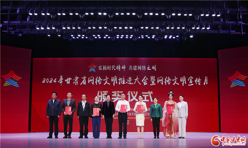 大會播放了網絡文明宣傳片《2024年文明“網”事》,發(fā)布了2024-2025年度甘肅省網絡文明宣傳大使(20人)、2023-2024年度甘肅好網民(40人)、文明網站平臺(15個)、文明賬號(25個)、網絡文明典型案例(10個),網絡文明宣傳大使代表、甘肅好網民代表、文明網站平臺代表、文明賬號代表、甘肅省網絡文明典型案例相關負責人等分別作故事分享。與會領導向獲獎單位及個人頒獎并共同啟動2024年甘肅省網絡文明宣傳月。