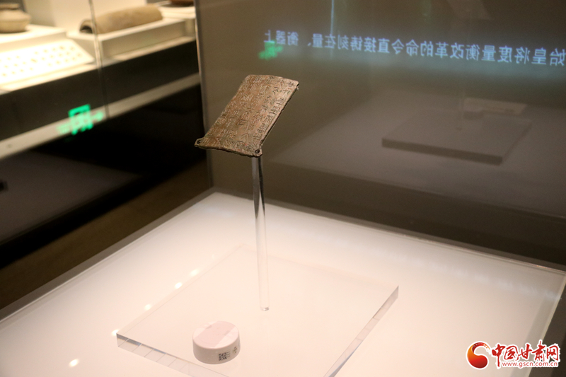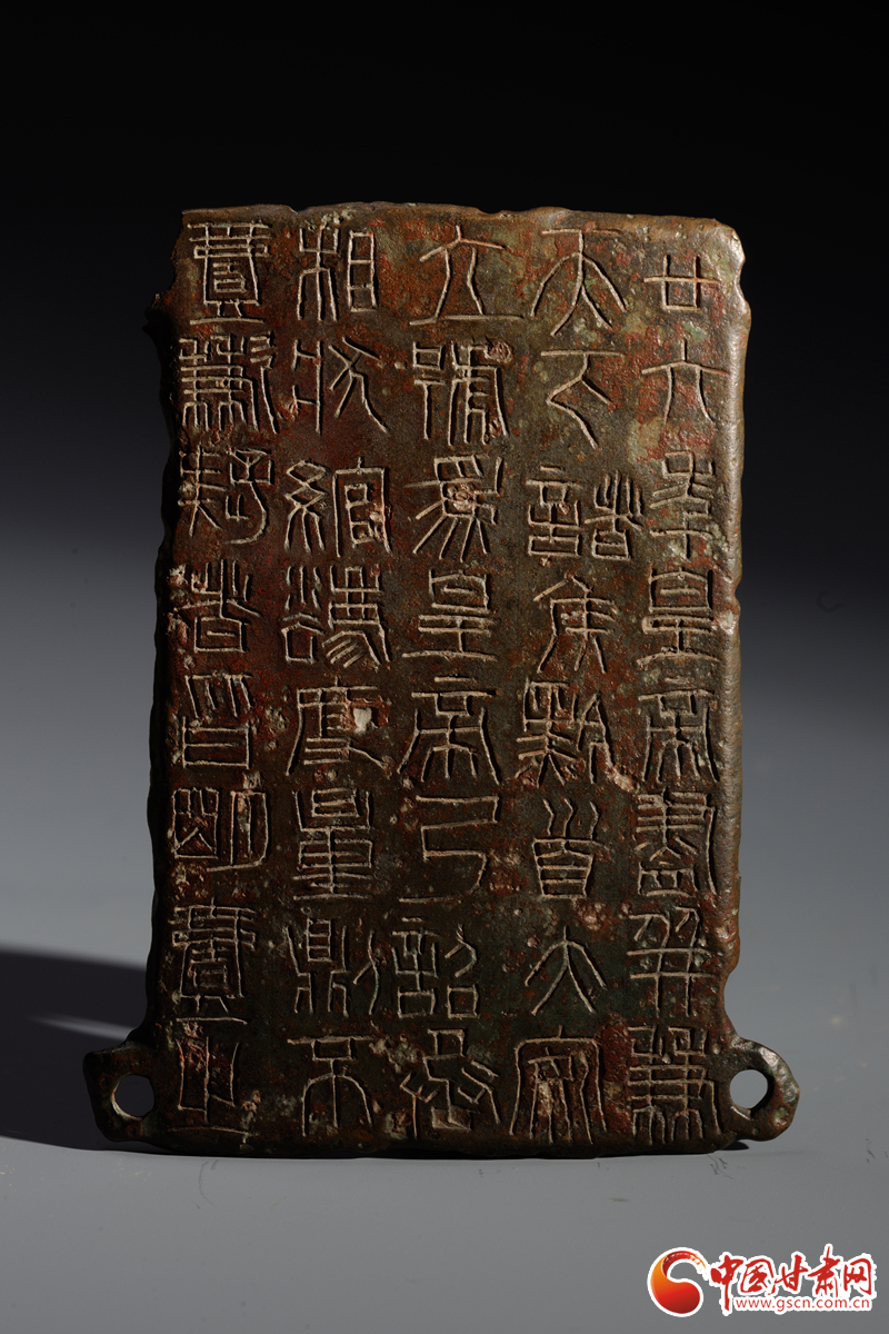 中國(guó)甘肅網(wǎng)9月14日訊(西北角·中國(guó)甘肅網(wǎng)記者 孫珩力)秦詔版,是指刻有秦始皇或秦二世統(tǒng)一度量衡詔書的銅版,有的鑲在鐵權(quán)、銅權(quán)上;有的四角有孔,用以釘在木頭的量器上。目前我國(guó)出土的刻有秦始皇詔文的遺物有銅橢量、銅錢等,不僅數(shù)量多而且分布也廣,而像這樣把詔文刻在銅版上的詔版形式在全國(guó)極為罕見(jiàn),鎮(zhèn)原縣博物館收藏的就是其中之一,可謂稀世珍品。