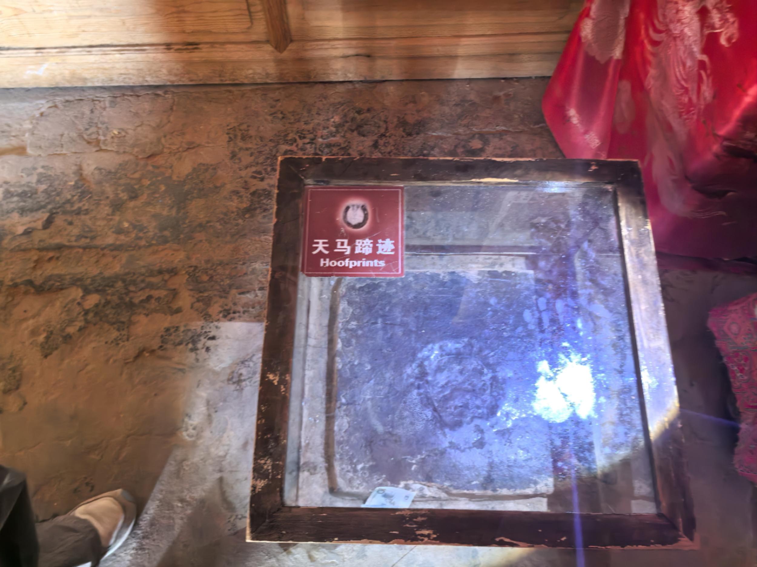山頂一石窟內(nèi)留有深深的馬蹄足跡,傳說是天馬下凡在此飲水時。一馬蹄印落在這里的一塊巖石上,寺院由此而得名。如今,這塊蹄印石被保存在馬王殿內(nèi)。