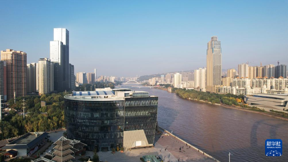 這是位于蘭州市城關(guān)區(qū)黃河南岸的蘭州音樂廳(10月17日攝,無人機照片)。新華社記者陳斌攝