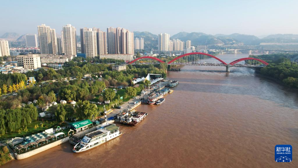 這是位于蘭州市城關(guān)區(qū)黃河北岸的鹽場堡碼頭(10月17日攝,無人機照片)。新華社記者陳斌攝