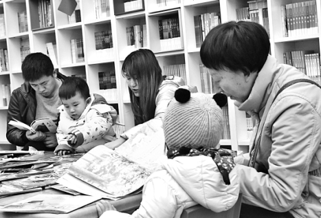 1月5日,在甘肅省天水市麥積區(qū)新華書店,孩子們?cè)诩胰说呐惆橄卤M享閱讀的喜悅和愜意,以閱讀方式度過新年的首個(gè)周末。