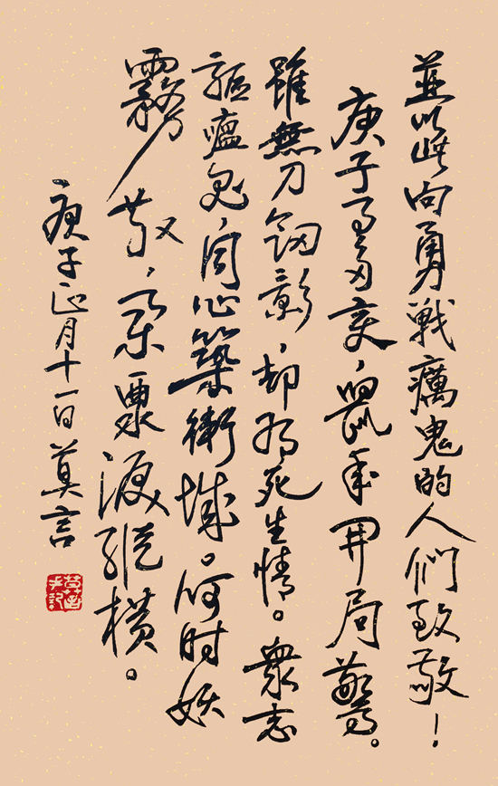 “同心驅癘鬼,眾志筑長城” 莫言 作