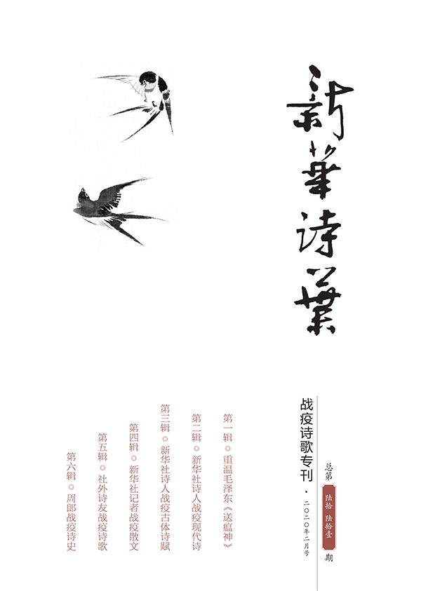 《戰(zhàn)疫詩(shī)歌??肥窃谛氯A社原副社長(zhǎng)何東君,原社黨組成員、秘書(shū)長(zhǎng)張錦的共同倡議策劃和組織指揮下,在較短時(shí)間內(nèi)高效率、高質(zhì)量完成的。這本專刊厚達(dá)140多頁(yè),共由六大單元組成。其中,第一輯開(kāi)篇重溫毛澤東《送瘟神》,由何東君撰文回顧新中國(guó)戰(zhàn)勝血吸蟲(chóng)病的悲壯歷史,以期為今日抗擊疫情汲取戰(zhàn)天斗地的民族精神力量;第二、第三輯分別刊登新華社記者編輯們抗疫主題的現(xiàn)代詩(shī)和古體詩(shī),風(fēng)格或豪放雄渾,或沉郁含蓄;最后一輯是周郎戰(zhàn)疫詩(shī)史專輯,專門刊登新華社高級(jí)編輯周清印的180首原創(chuàng)抗疫題材詩(shī)詞,彰顯對(duì)中華詩(shī)史傳統(tǒng)基因的繼承創(chuàng)新。