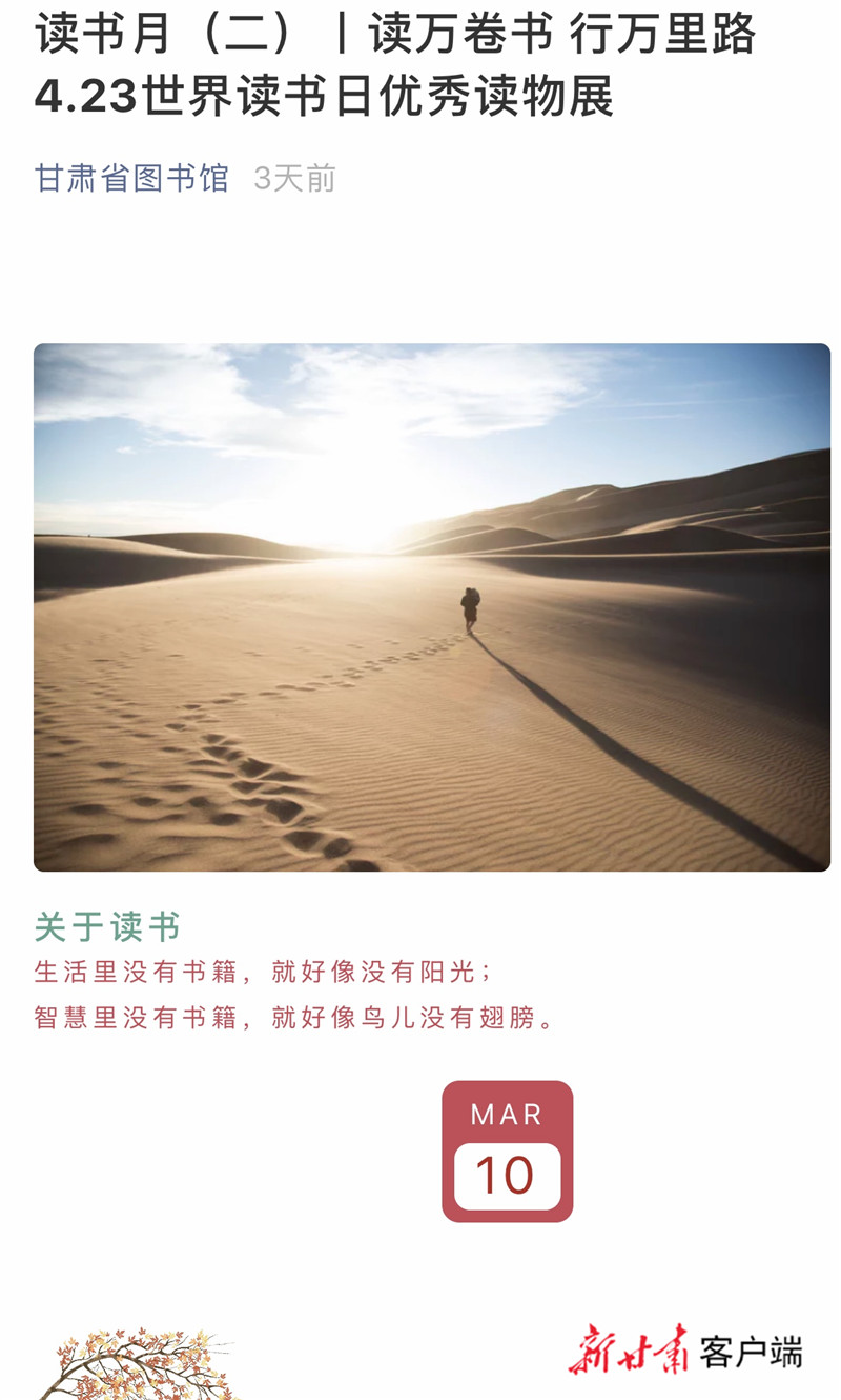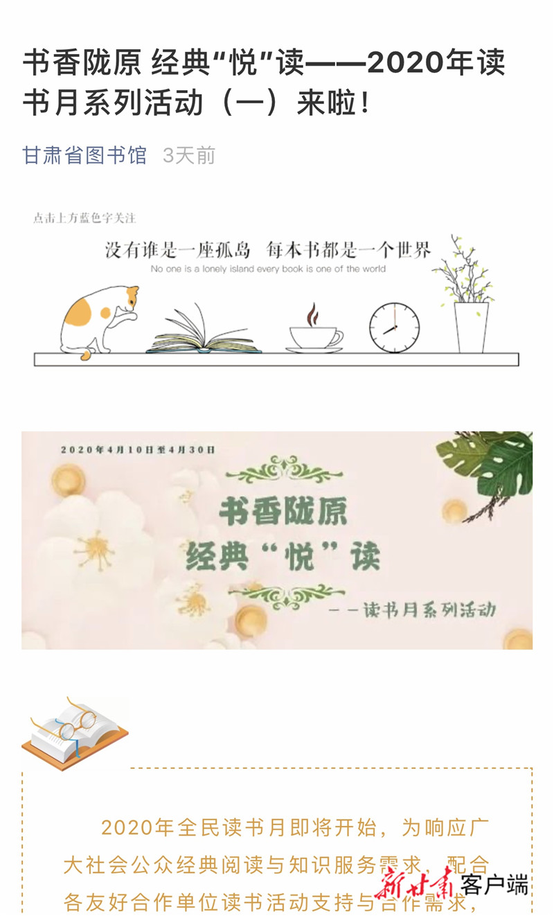 讓我們一起讀書(shū)吧!甘肅省圖書(shū)館推出線(xiàn)上讀書(shū)月系列活動(dòng)