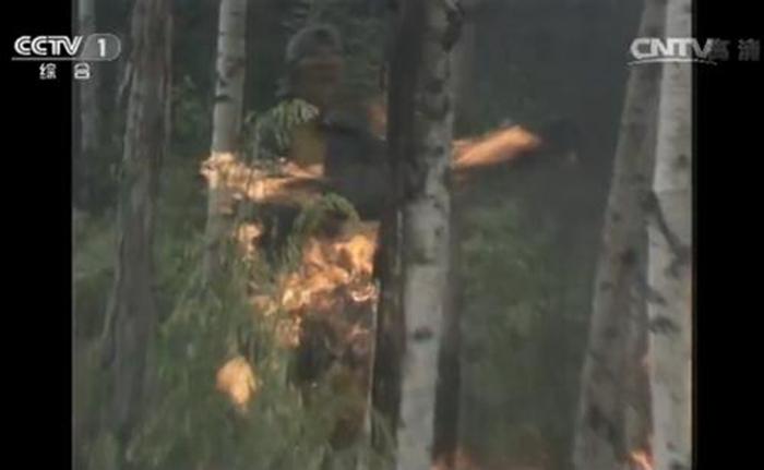 “大戰(zhàn)紅孩兒”中,紅孩兒放火燒孫悟空。這一幕也是很真實的拍攝。圖片來源:82版《西游記》視頻截圖