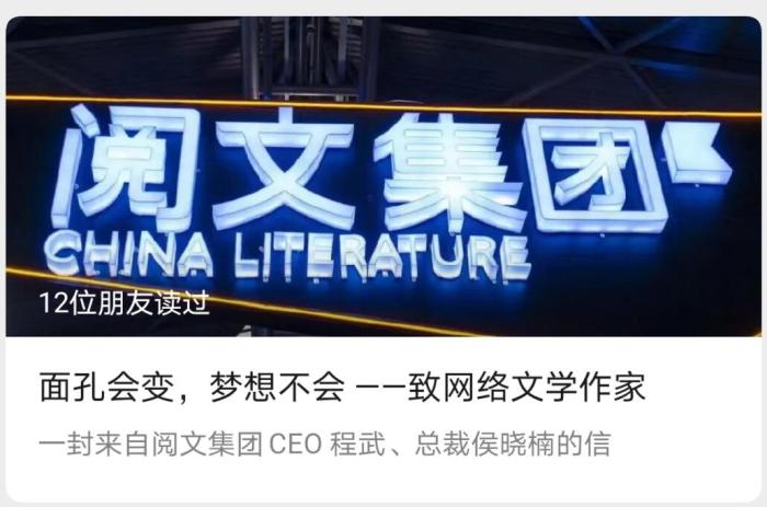首場(chǎng)懇談會(huì)后,閱文集團(tuán)新管理層宣布改革舊合同。微信文章截圖