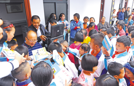 作家深入湖北谷城縣廟灘鎮(zhèn)黃畈村農(nóng)家書屋開展圖書簽贈導(dǎo)讀活動。