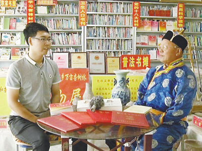 吉林省通榆縣迷子荒村農(nóng)家書屋管理員張樹森在接受媒體采訪。