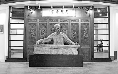 錢仲聯(lián)先生是學(xué)者,以研究古代詩詞著稱,尤其清詩研究,是中國最高權(quán)威。錢先生研究古代文學(xué),不僅能夠旁征博引,發(fā)人所未發(fā),更重要的是所有古代文學(xué)形式詩、詞、駢體文,錢先生都能如同古人一樣進(jìn)行創(chuàng)作。錢先生是1981年國家首批博導(dǎo),學(xué)界不僅重視他的學(xué)術(shù)成就,同時崇敬他的詩人身份。王元化稱錢先生為“一代詩豪”,深得學(xué)界贊同。那么,一位每天沉浸在古典世界的學(xué)者,應(yīng)該怎樣雕塑呢?紀(jì)峰創(chuàng)作的錢仲聯(lián)先生銅像是座半身像,我以為可以稱作“思想者錢仲聯(lián)”。錢先生緊閉雙唇,雙目微微下視,凝視不動。寧靜的表情,頭腦里卻在翻江倒海,風(fēng)云變幻。雖然面對的只是三尺書桌,但思想的深處,卻是上下五千年,縱橫八萬里。這是學(xué)者的獨特世界,平靜的海面平衡著深海的波濤洶涌。錢先生非常喜歡這座雕塑,臨睡前要用一方毛巾蓋上,說該休息了。早上,進(jìn)入書房的第一件事,就是拿掉毛巾,說該看書了。錢仲聯(lián)先生的最后歲月里,這件雕像成了他的工作同伴。