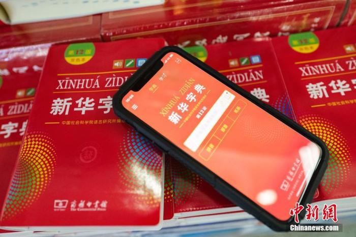 8月11日,北京圖書大廈出售的《新華字典》(第12版)及同步上線的同名手機(jī)應(yīng)用程序。中新社記者 侯宇 攝