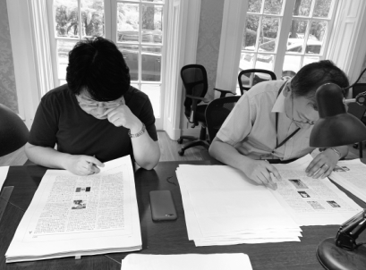 上海辭書出版社社長秦志華(右)和副總編輯張敏審讀《辭?!罚ǖ谄甙妫┬?。