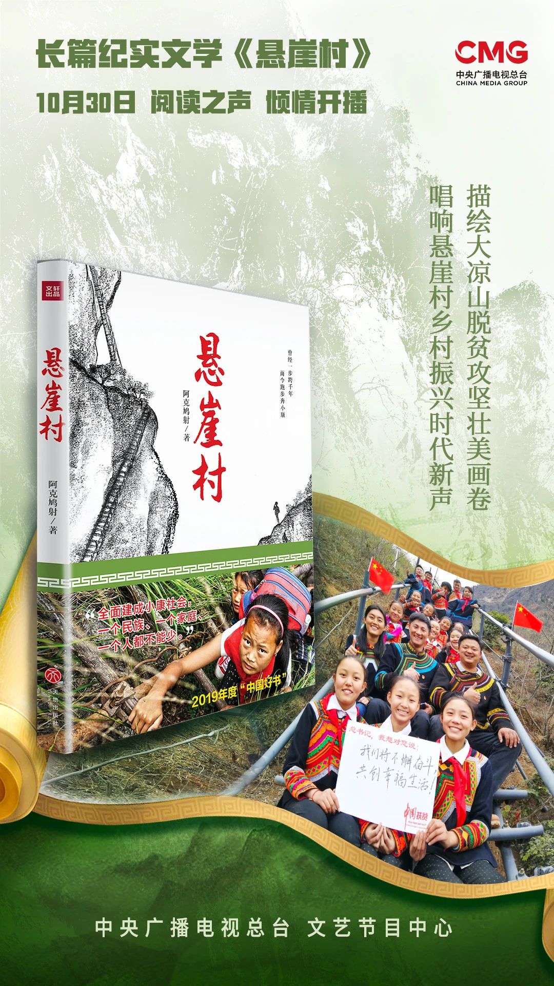 長篇紀(jì)實(shí)文學(xué)《懸崖村》于10月30日起在中央廣播電視總臺閱讀之聲開播,同時(shí)上線新媒體。