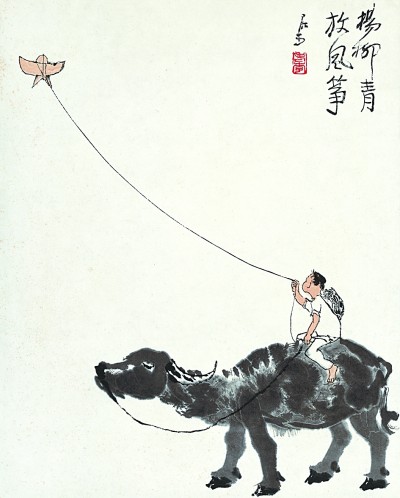 《楊柳青 放風箏》 李可染作