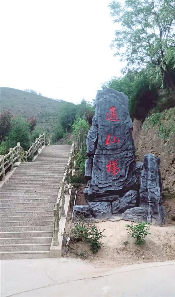 一條羊腸小道蜿蜒了千年,承載了無數(shù)游覽者匆匆的步履,在人們無數(shù)次的暢想中,化成了一條金光大道,讓老人、孩童和物資可直達寺窟門外。醒目的“通仙梯”石刻指引人們沿著游步道拾級而上,領略綠樹掩映、曲徑通幽的絕好勝景,金黃的葉子在濃密的綠葉間格外鮮亮,松樹和柏樹你擠著我,我挨著你,密密匝匝,在五月的陽光和微風中,吟唱著生命的贊歌。白色槐花香氣馥郁,紅色槐花鮮艷奪目,它們從高高的枝頭垂下來,或從山崖斜伸而出,或與游人摩肩而過,或者親呢的撫摸一下游人的笑臉。掩映綠樹中的亭子,是一道絕好的景觀,讓人產(chǎn)生一種遐想和逗留的念想。亭子旁叫不出名的小鳥輕盈的飛舞和歡快的鳴叫,增添了一種活潑美妙的情趣。這情趣給花樹、亭子帶來一種靈性,頻添了無限韻味和妙趣。
