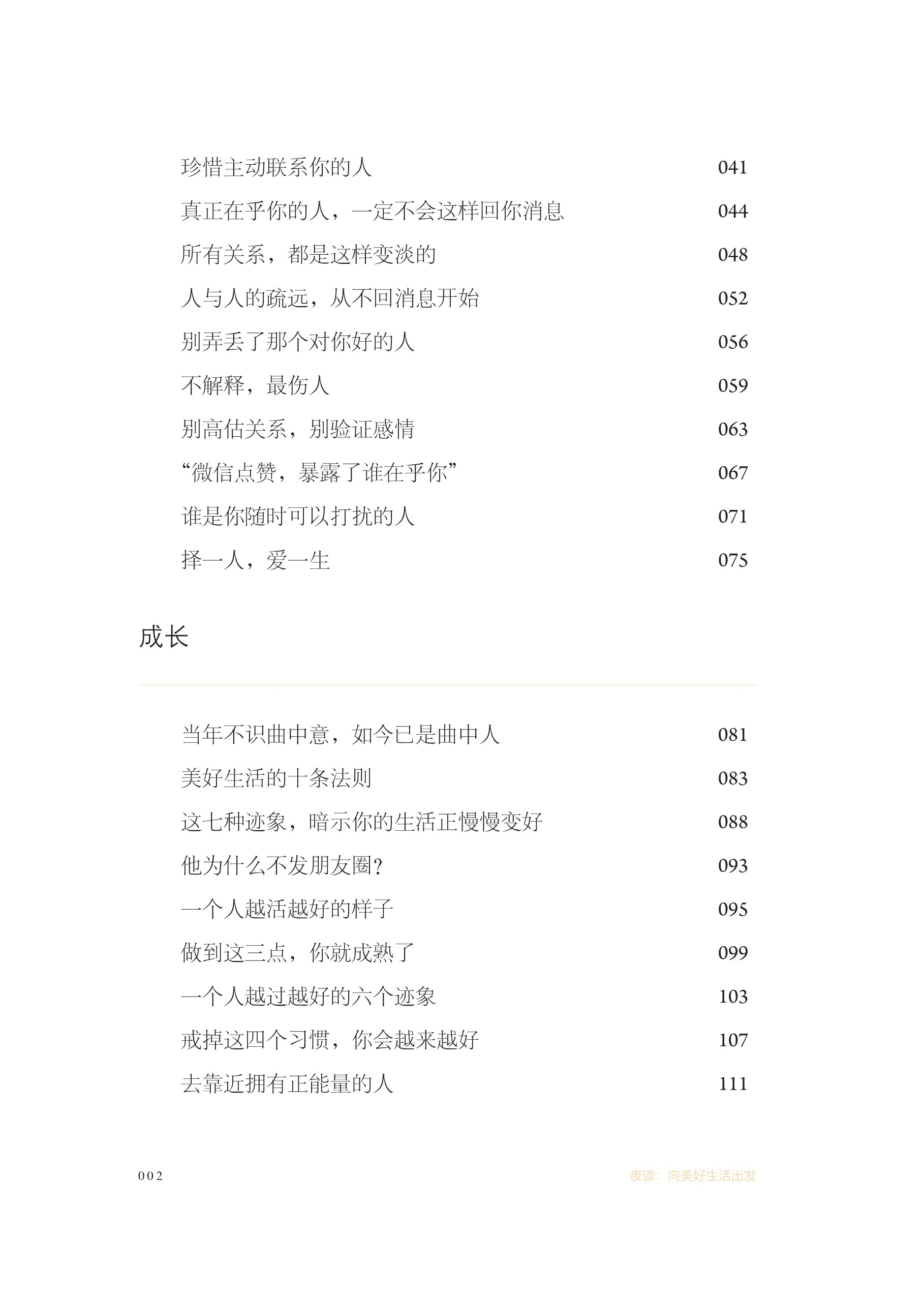 本書精選了新華社“夜讀”欄目五年來(lái)的近百篇文章,涵括親情、友情、成長(zhǎng)、修養(yǎng)等多個(gè)話題,通過(guò)小視角身邊事給讀者帶來(lái)人生的感悟與啟迪,幫助讀者培養(yǎng)正確的價(jià)值取向和良好的品德修養(yǎng)。文章均配有專業(yè)主播朗讀,以優(yōu)質(zhì)聲音演繹精品內(nèi)容,讓讀者體驗(yàn)更多與書相伴的方式,是送給新時(shí)代青年的一本有溫度的書籍。