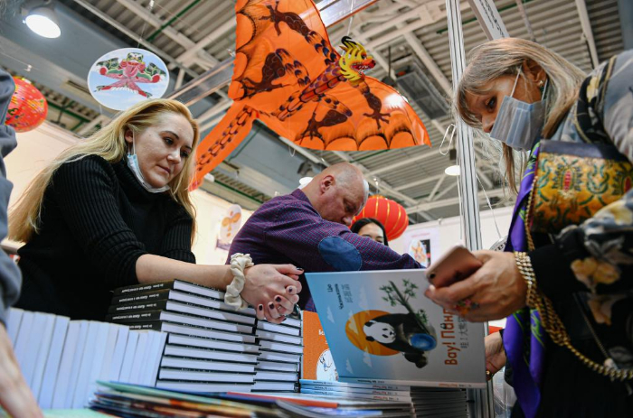 中國展臺重點展示中外文版《習近平談治國理政》等重要著作。講述中國抗疫故事、展示中國經(jīng)濟社會發(fā)展成就的一批圖書也受到俄羅斯讀者喜愛。