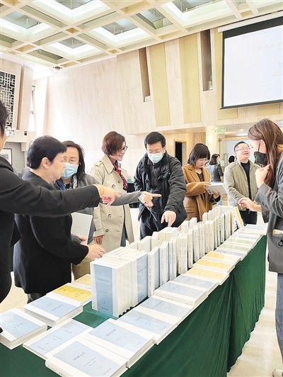中場(chǎng)休息,與會(huì)專(zhuān)家學(xué)者圍著叢書(shū)第一輯熱烈交談。