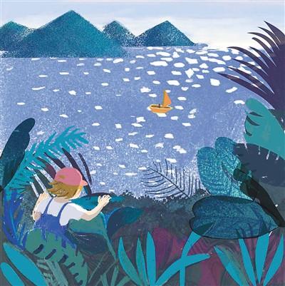 在遠(yuǎn)離故鄉(xiāng)的城市里,我的心無處可去。身處故鄉(xiāng)的時(shí)候,我們總眼望遠(yuǎn)方,“然而/那未知的風(fēng)景才是我向往的/哪怕它已落花滿地/哪怕它已人去樓空”。我喜歡這四句,因?yàn)樗欠N平靜而堅(jiān)決的向往,寥寥幾句卻直透人心。這首詩的配圖是樹叢中的孩子遠(yuǎn)眺平靜湖面上一艘小船,粼粼的湖面像藍(lán)灰色的操場一樣平實(shí),就像無聲的邀請。但當(dāng)我們走到遠(yuǎn)方,故鄉(xiāng)又會(huì)成為心頭揮之不去的念想。