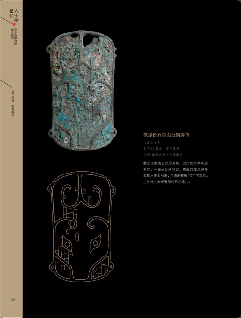 《八千年的記憶——天水市博物館通史陳列》文物圖錄一書在編輯出版過程中,凝聚了眾多工作人員的心血。天水市博物館學(xué)術(shù)研究部在文物的遴選確定、資料整理、編寫、校對方面做了大量的工作,文物保管部在文物照片拍攝、文物信息提供方面積極配合、全力協(xié)助,信息中心在展廳照片拍攝方面提供了幫助。本書中部分插圖,由甘肅省博物館、甘肅省文物考古研究所、麥積山石窟藝術(shù)研究所、張家川回族自治縣博物館友情提供。今由文物出版社正式出版,文物圖片精美、文字說明簡潔明快,希望更多的讀者通過此書認(rèn)識天水,也希望更多的人能夠因?yàn)榇藭H臨天水市博物館感受天水厚重的歷史文化。