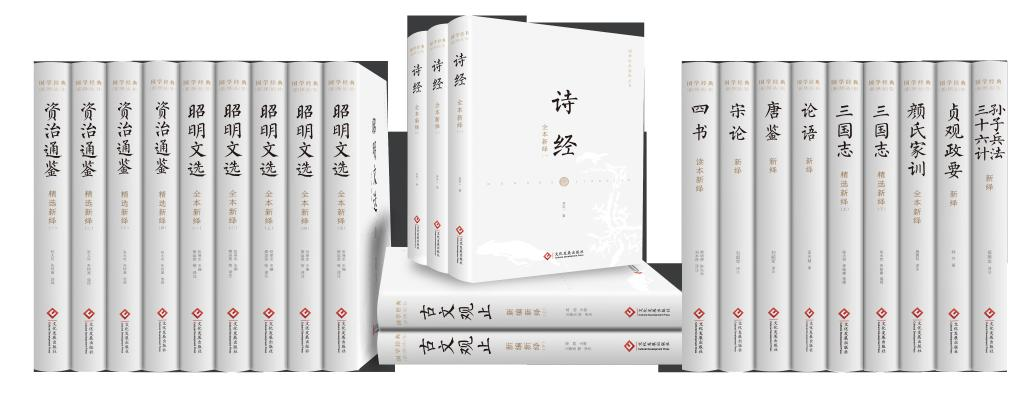 叢書第一輯共12種23冊(cè),包括《四書讀本新繹》《詩經(jīng)全本新繹(全三卷)》《昭明文選全本新繹(全五卷)》《古文觀止新編新繹(上下)》《唐鑒新繹》《宋論新繹》《論語新繹》《顏氏家訓(xùn)全本新繹》《資治通鑒精選新繹(全四卷)》《三國(guó)志精選新繹(上下)》《孫子兵法·三十六計(jì)新繹》《貞觀政要新繹》,內(nèi)容涉及政治、哲學(xué)、文學(xué)、歷史、軍事等。