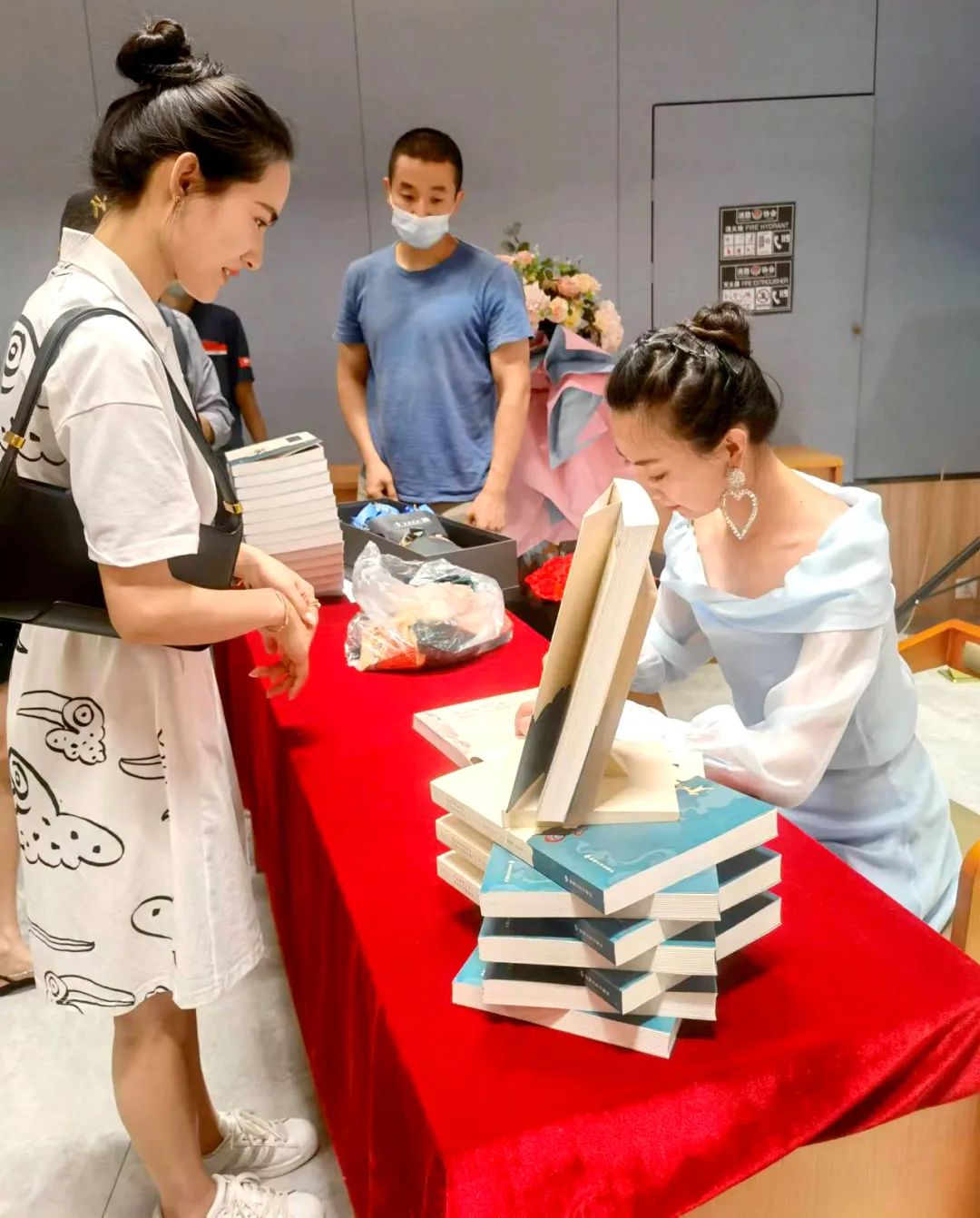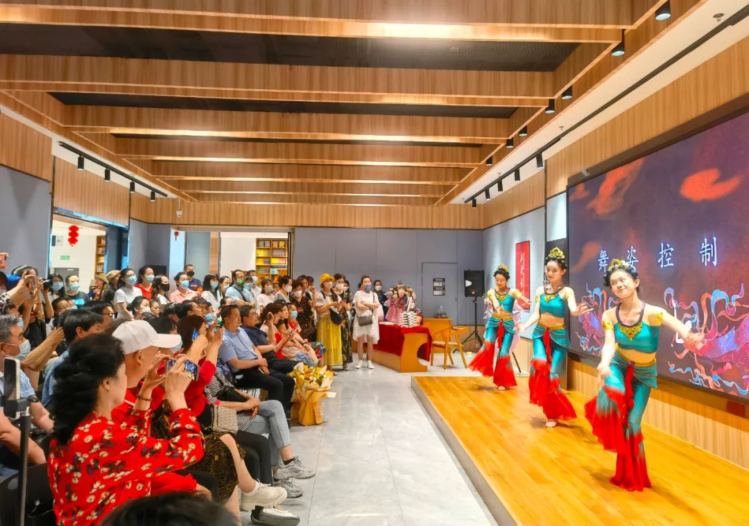 見面會還設(shè)計了互動環(huán)節(jié),主編李莉現(xiàn)場教學(xué),五位敦煌舞愛好者認真模仿,作者還向參與互動的讀者贈送了本書。在簽售環(huán)節(jié)后,作者及參演人員和讀者合影留念。