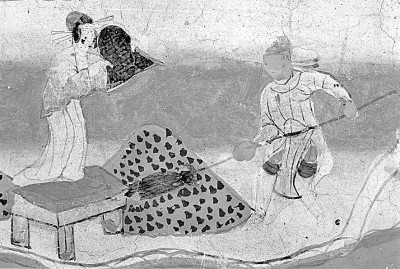 芒種時(shí)節(jié),農(nóng)人收割和揚(yáng)場的情景。揚(yáng)場 莫高窟第61窟(五代) 選自《敦煌歲時(shí)節(jié)令》