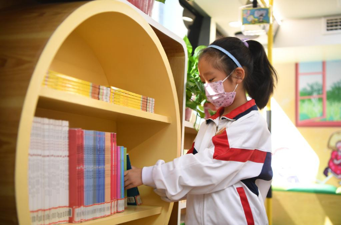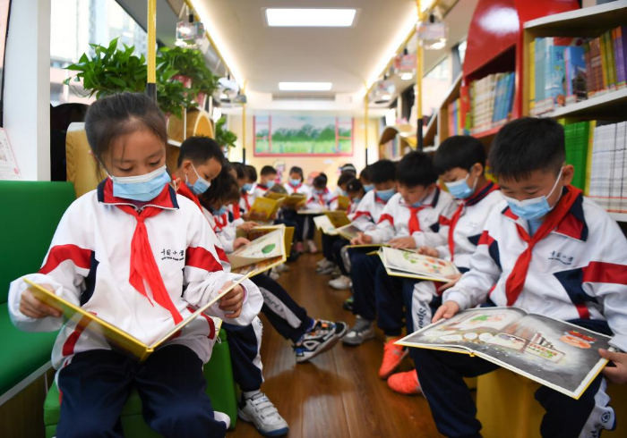 11月10日,學(xué)生在長沙市青園友誼小學(xué)巴士圖書館內(nèi)閱讀。