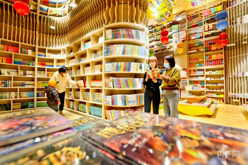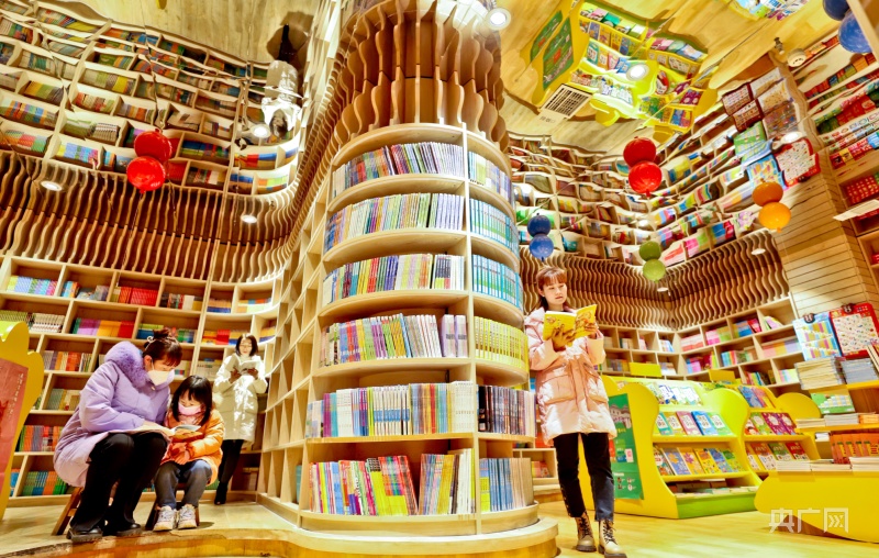 1月23日,市民帶著孩子在甘肅張掖錦華書城讀書、選書、購(gòu)書。(央廣網(wǎng)發(fā) 王將 攝)