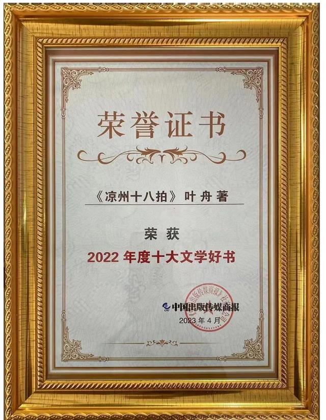 第十一屆春風(fēng)悅讀榜年度頒獎典禮4月22日在浙江杭州舉辦,著名作家葉舟長篇小說《涼州十八拍》榮獲白銀獎。此外,4月21日由中國書刊發(fā)行業(yè)協(xié)會、中國新華書店協(xié)會、韜奮基金會等聯(lián)合發(fā)起的第十屆讀友讀品節(jié)上,《涼州十八拍》入選2022年度十大文學(xué)好書。